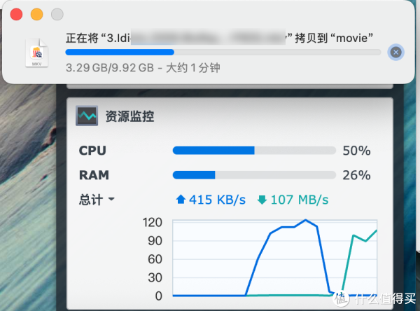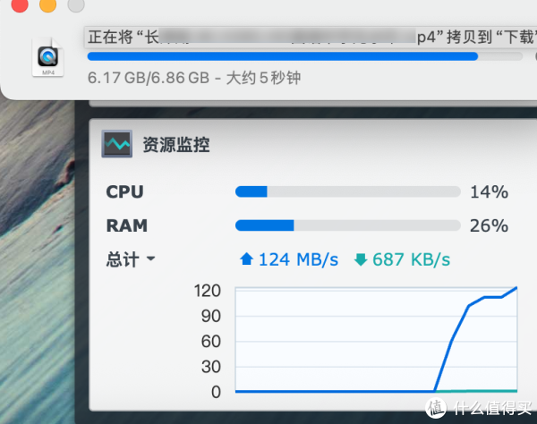 第二个变化更明显,SMB协议下,oec群晖文件复制到macmini电脑速度能跑满千兆网。反过来macmini复制到oec群晖也能上100MB/s。